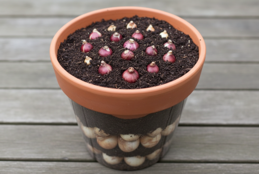 For container planting, the lasagne method (layering bulbs) maximises impact in limited space. Place late-flowering bulbs like Tulips deepest, mid-season bulbs like Daffodils in the middle, and early bloomers like Crocus on top.